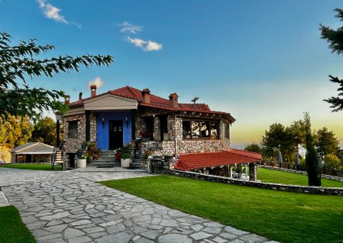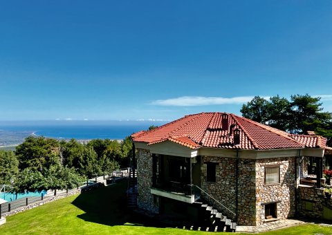 Das familiengeführte Hotel Fakis liegt oberhalb von dem beschaulichen Ort Litochoro. Die Anlage erstreckt sich über sechs Hektar, mit Blick auf die Ägäis und dem mythischen Olymp im Rücken. Das Haupthaus und der Anbau sind in traditioneller Steinoptik gebaut – rustikal, bodenständig, mit einem Charme, der nicht inszeniert wirkt.